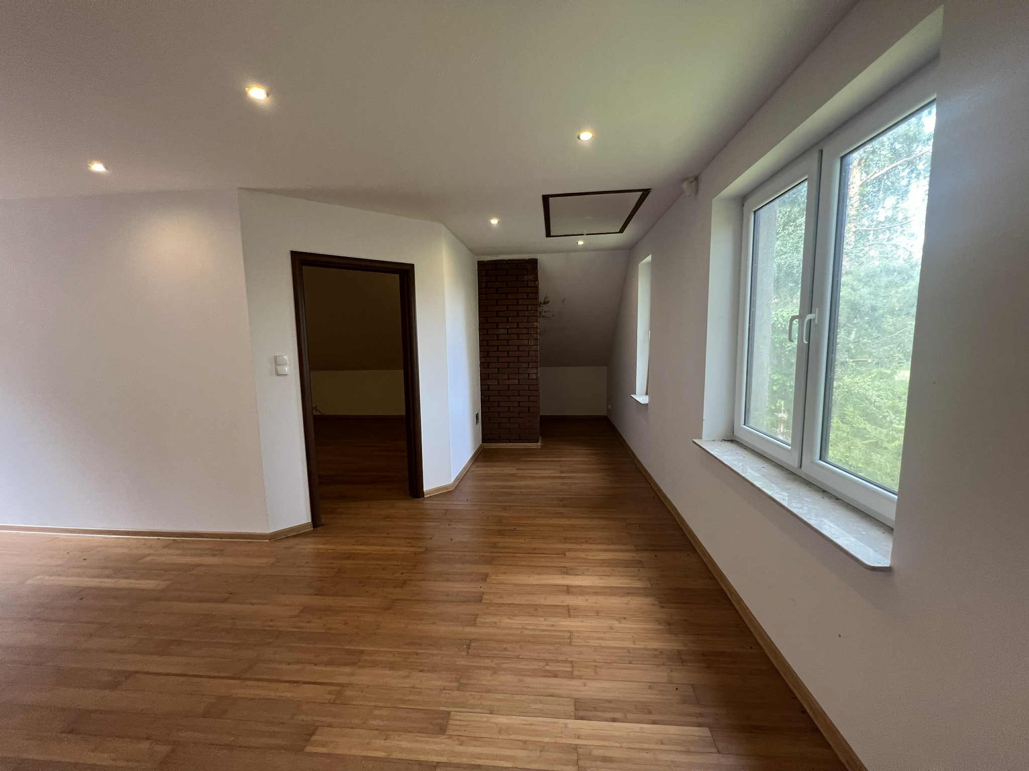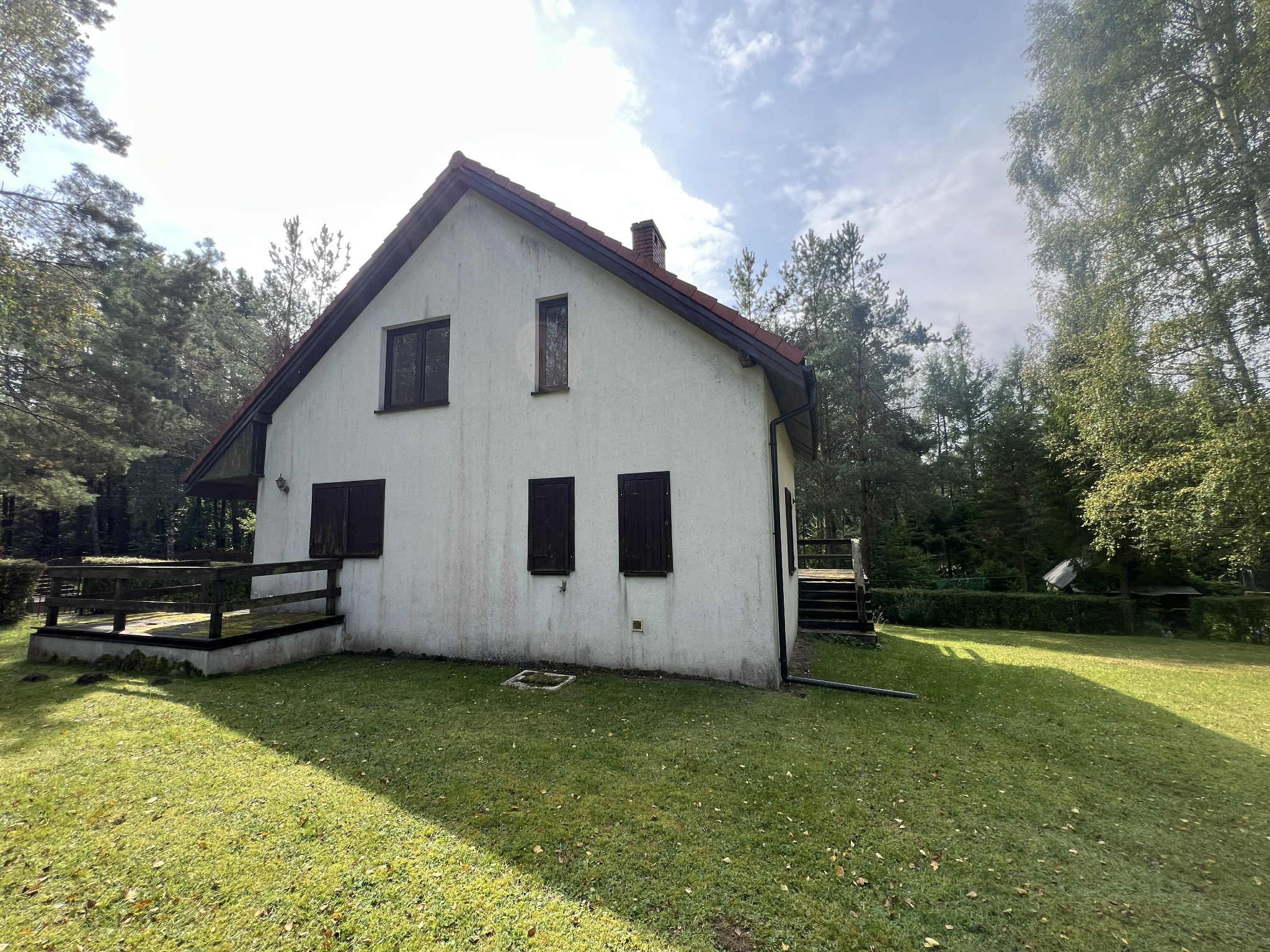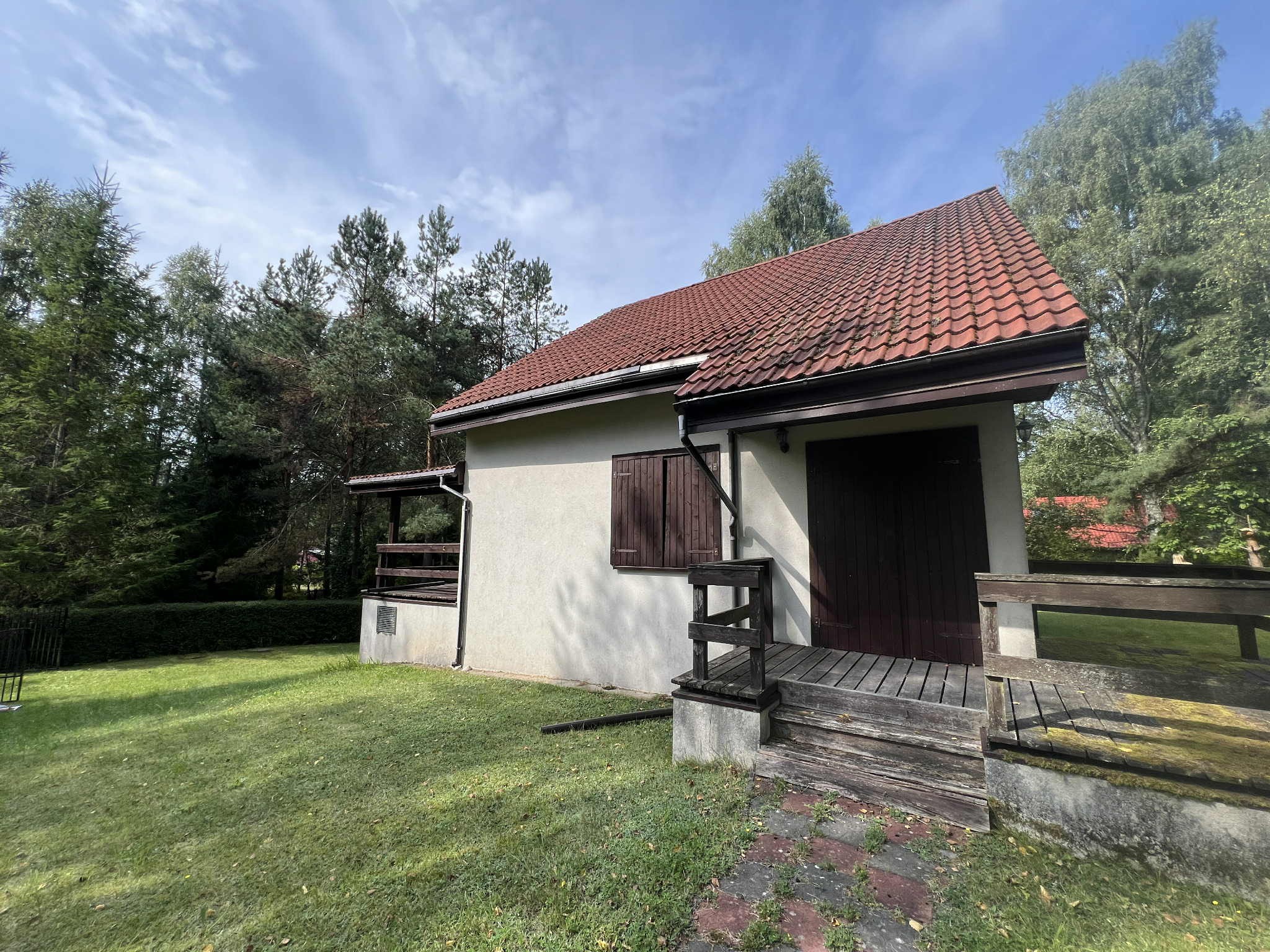 Nieruchomość położona jest na lekkim wzniesieniu, co pozwala napawać się pięknem zieleni. Na wysokim parterze zostały rozplanowane następujące pomieszczenia: przestronny salon z aneksem kuchennym o powierzchni 46m2, garderoba 2,73m2, łazienka ok.4m2 . Na piętrze zaprojektowano otwartą przestrzeń (antresola) – 22,85m2 oraz dodatkowy pokój 19,50m2. Na piętro prowadzą solidne drewniane schody . Budynek jest całkowicie podpiwniczony z garażem i dodatkowym pomieszczeniem gospodarczym. Na dzień dzisiejszy ze względu na nieużytkowanie budynku, w nieruchomości należy przeprowadzić następujące prace remontowe tj.: wymiana desek tarasowych , wymiana podłóg (liczne wybrzuszenia) , naprawa części dachu i komina (widoczne zacieki i zawilgocenia). Budynek został odebrany przez Powiatowy Inspektorat Nadzoru Budowlanego, który wydał decyzję pozwalającą na użytkowanie opisanego budynku letniskowego. Oferta doskonała dla osób chcących przebywać w bezpośredniej bliskości z przyrodą i doceniającymi uroki natury. W najbliższym sąsiedztwie znajdują się jeziora : Potęgowskie, Czarne, Białe, Kocenko , Odnoga oraz Junno i Kamienieckie.