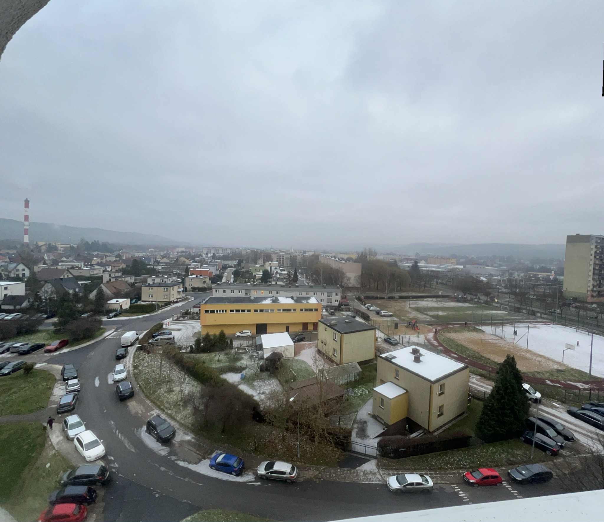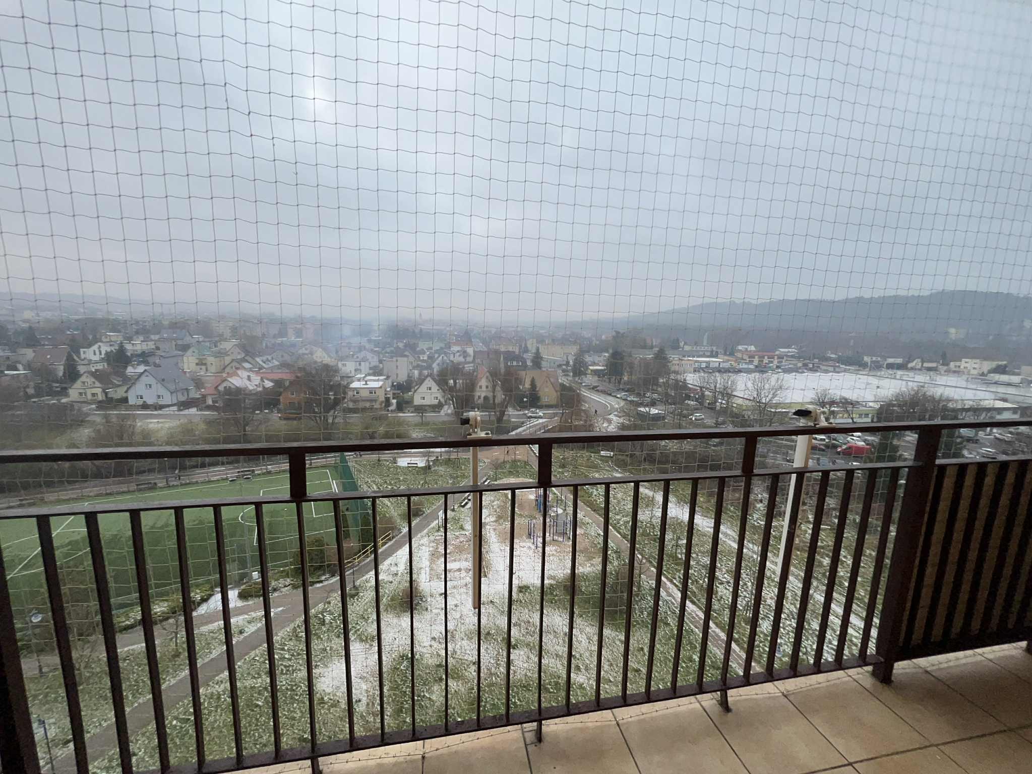 Z pokoju dziennego jest wyjście na przestronny balkon z którego rozpościera się widok na panoramę okolicy.